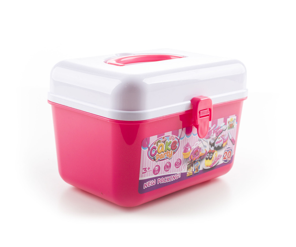 Ez a G21 gyerek koffer egy egész pékséget rejt magában! A torták eladására való tartozékokkal örömet szerez minden kis péknek és cukrásznak. A gyönyörű rózsaszín műanyag koffer egy bolt másolatát tartalmazza, tortákkal és egyéb édességekkel