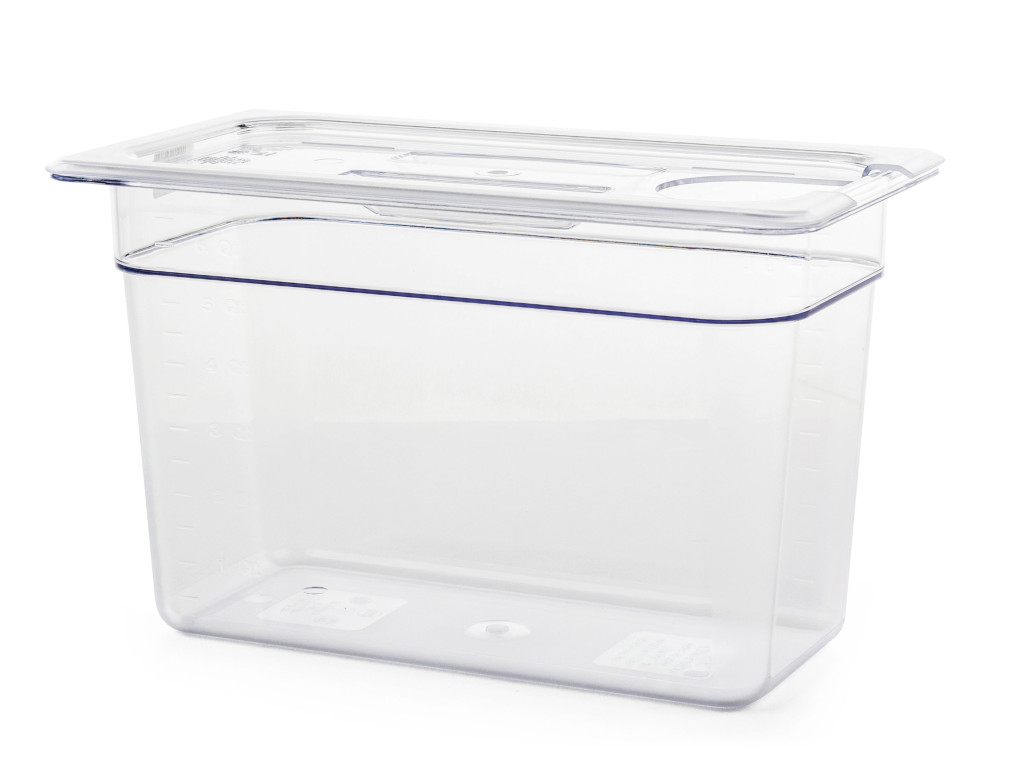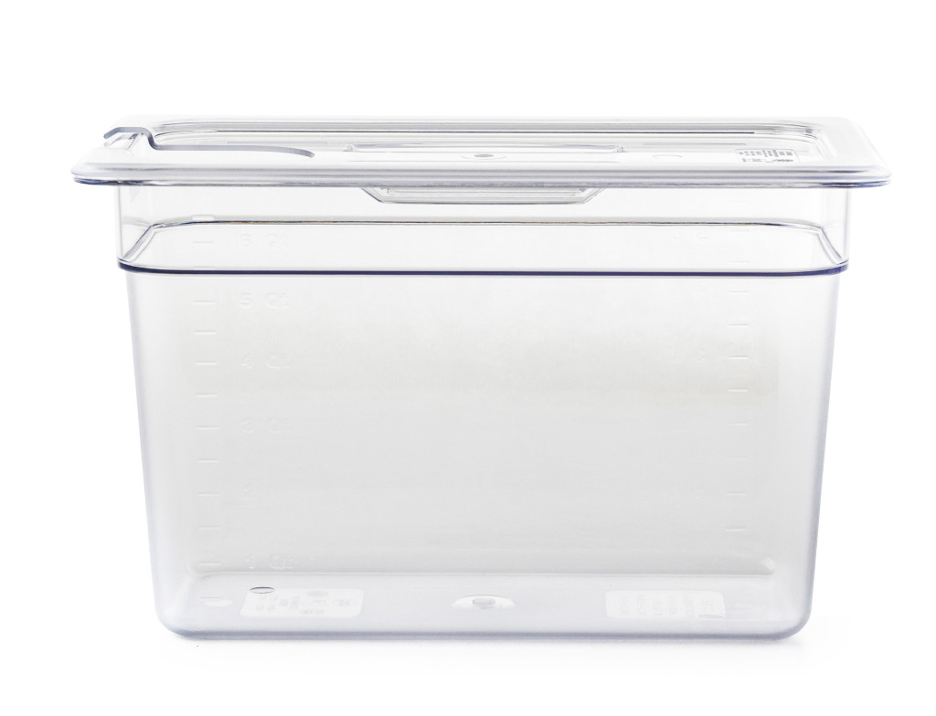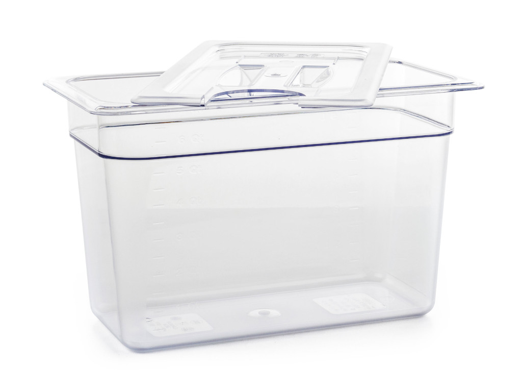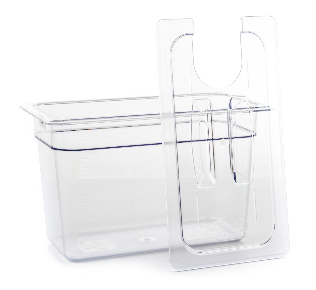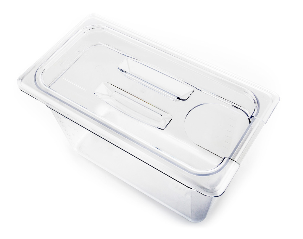 A sous-vide főzésre szolgáló G21 tartály rendkívül tartós polikarbonátból készül, és a fém edényekhez képest hatékonyabban tartja meg a hőmérsékletet, és hozzásegít a víz gyorsabb felmelegítéshez. A tartály polikarbonát anyaga megfelel a legszigorúbb biztonsági követelményeknek is és nem káros az egészségre. A felhasznált anyag nagy stabilitásának köszönhetően a tartály mosogatógépben is mosható, ami sok időt és fáradságot takarít meg. Ezen kívül az edény olyan fedéllel rendelkezik, amelyet a G21 a sous-vide tűzhelyhez tervezték. Természetesen a fedél más sous – vide főzővel is használható.