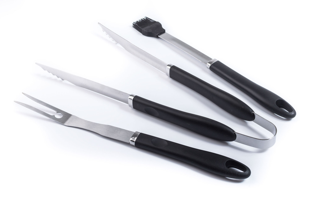 A 3 db-os G21 rozsdamentes acél grillező eszköz kenőecsetet, grillvillát és grillcsipeszt tartalmaz a készletben. A segédeszközök hossza 41 és 45 cm.