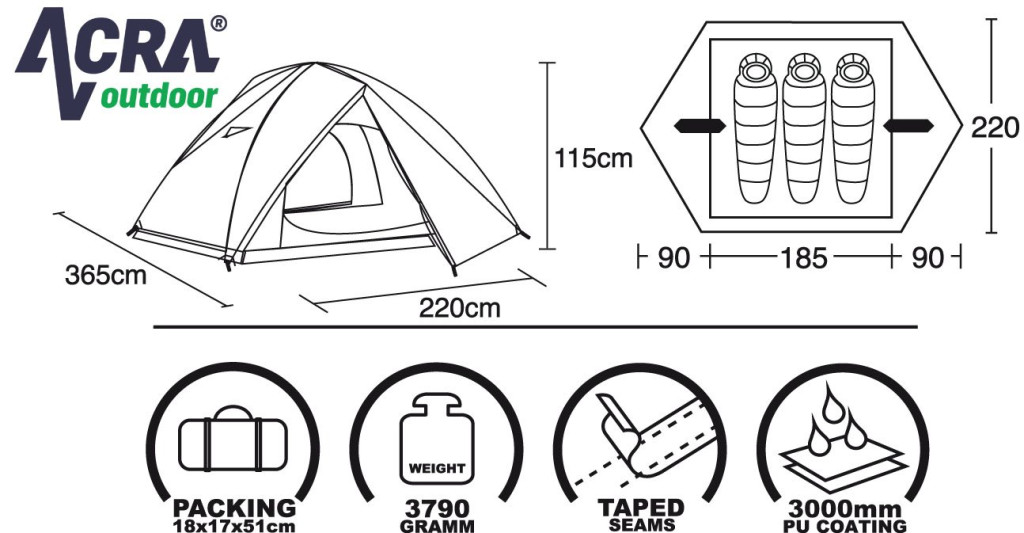 Fogja meg az Acra BROTHER ST06 sátrat és induljon kempingezni. Kényelmesen elfér benne 3 személy. Könnyen elcsomagolja az útra. mivel könnyen tárolható. Amennyiben autóval fog utazni, nem foglal túl sok helyet a csomagtartóban. A sátorbanfelakasztható hálószoba van és a felső ponyva üvegszálas tartórudakra van húzva.