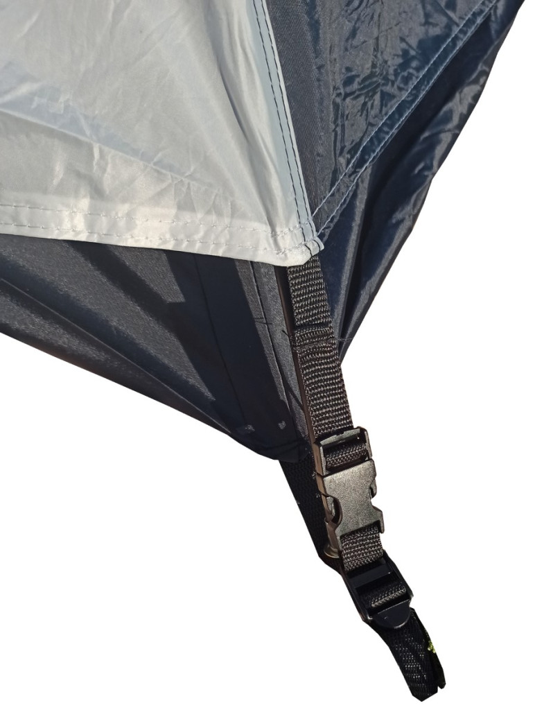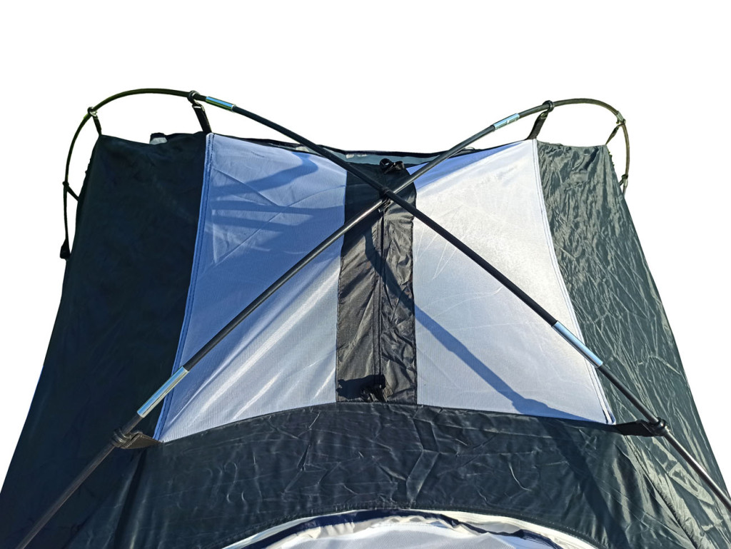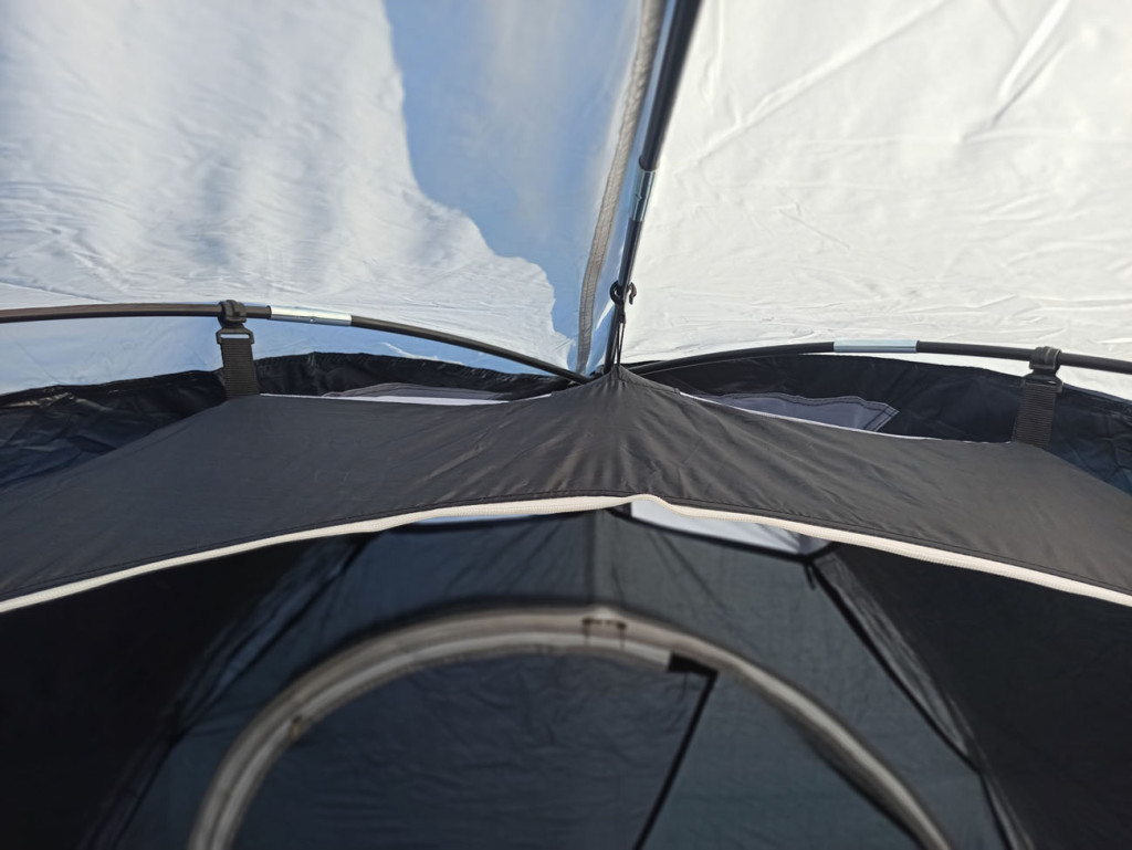 A kétponyvás sátor mindkét bejárata előszobával van ellátva, hogy az eső ne essen be. Bezárhatja cipzár segítségével. Az erősített varratok megakadályozzák a víz bejutását a sátor belső terébe.