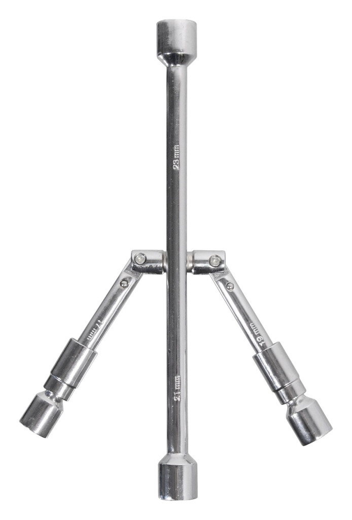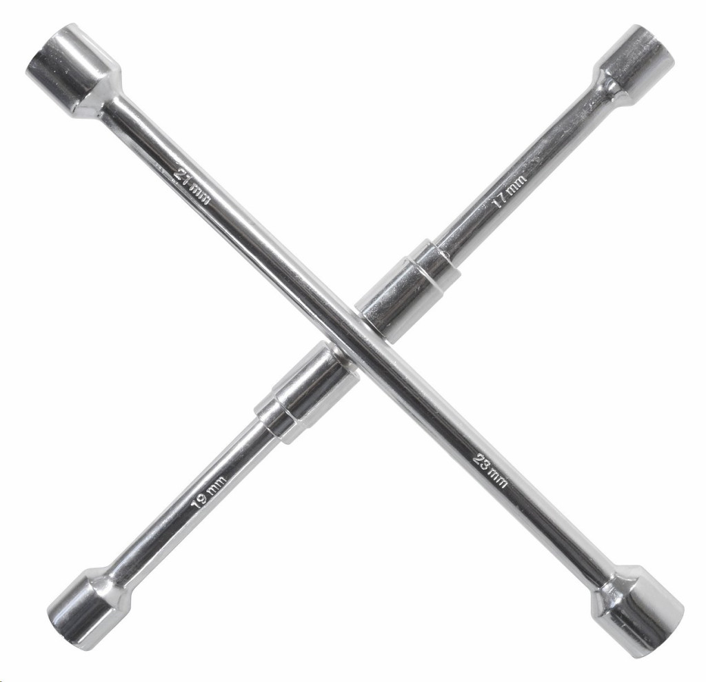 A Compass márkájú összecsukható kereszt alakú fémkulcs az autó felnik anyái és csavarja kilazítására / meghúzására szolgál. A végein 17, 19, 21 és 23 mm méretű fejek találhatók.