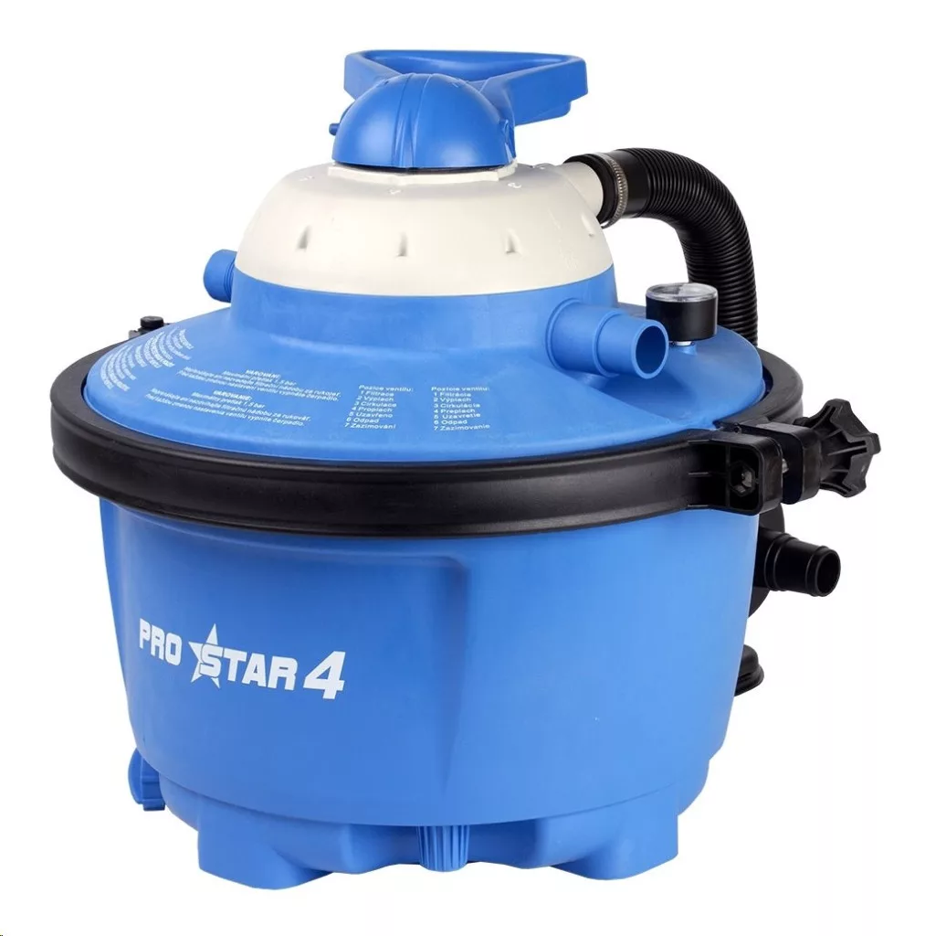A ProStar 4 homokszűrő rendszere szűrőtartályból tevődik össze, amelybe 17 kg szűrőhomok fér bele. A tartály magas minőségű polipropilénből (PP) készül. Varrásmentes, ellenáll a rozsdásodásnak és a medencékben használt általánosan elérhető vegyszereknek.