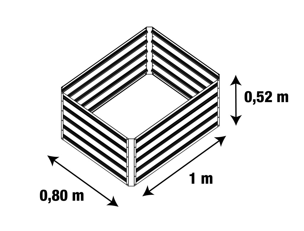 G21 Daisy fémlemez karbantartásmentes magaságyás, 52 cm magasság, alj területe 0,8 m2, űrtartalom 0,4 m3. Minőségi anyag, egyszerű összeállítás, kiváló tulajdonságok. Alkalmas a föld és a szubsztrátum rétegezésére.