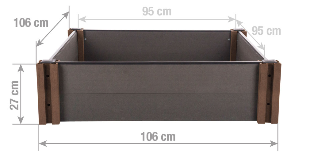 Ellenálló karbantartásmentes G21 Crop magaságyás 27 cm magassággal 0,9 m2 területtel a jobb zöldségtermésért, és gyógynövény- illetve virágtermesztésre. Első osztályú anyag, egyszerű összeállítás, kiváló tulajdonságok.