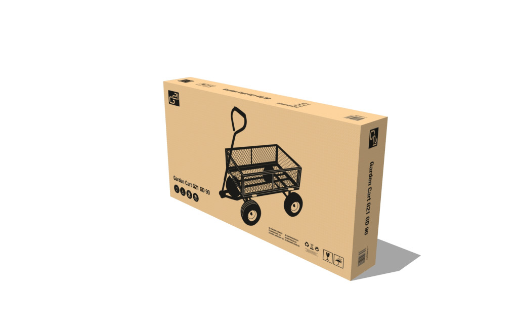 A G21 GD 90 fém kerti vagy építőipari kocsi 90 l-es fém teknővel rendelkezik, melynek teherbírása 200 kg. A két tengelyen 4 darab felfújható kereket helyeztünk el, amelyekből az egyik vezérlő. Ennek köszönhetően a kocsi könnyen kezelhető.