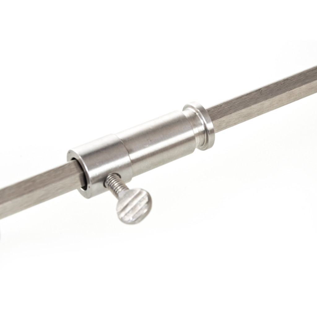 A nyárstű két rögzítő rozsdamentes acél lapot és csavarokat tartalmaz: