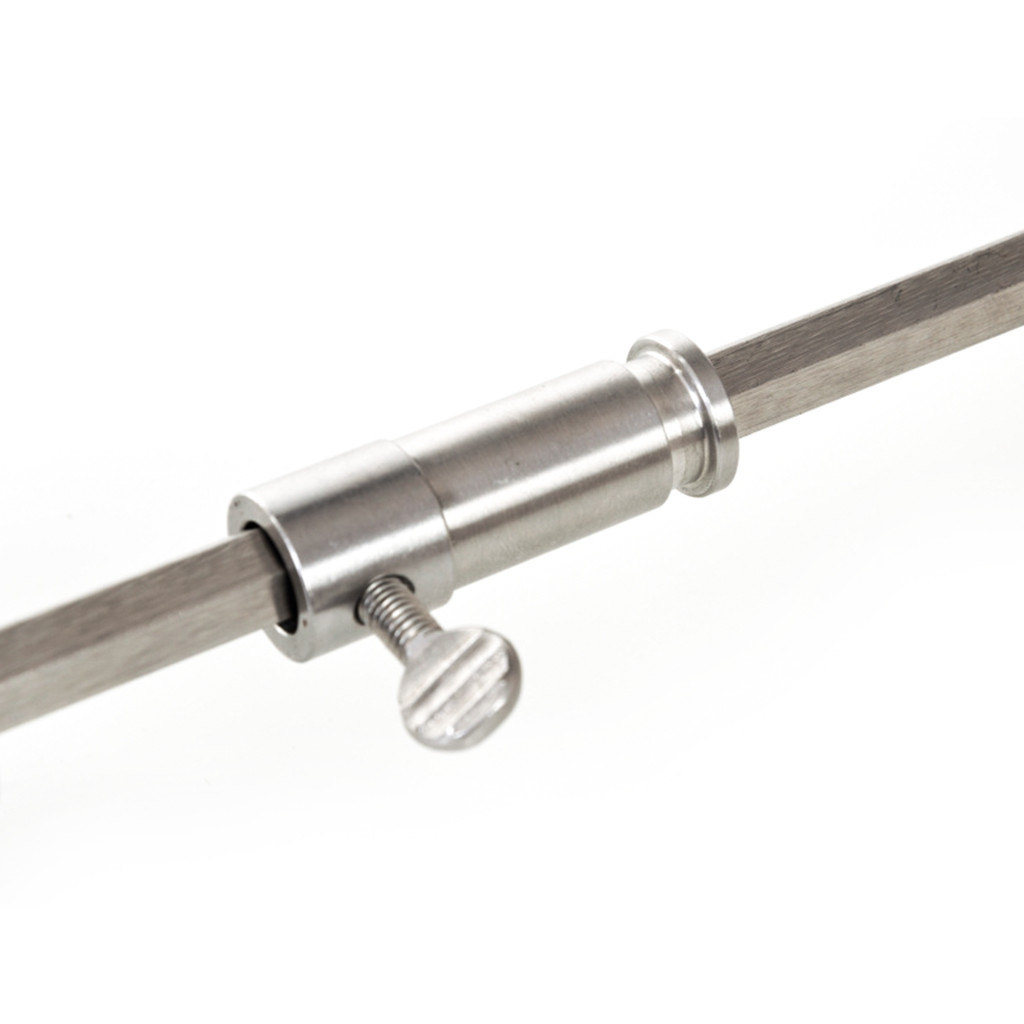 A nyárstű két rögzítő rozsdamentes acél lapot és csavarokat tartalmaz: