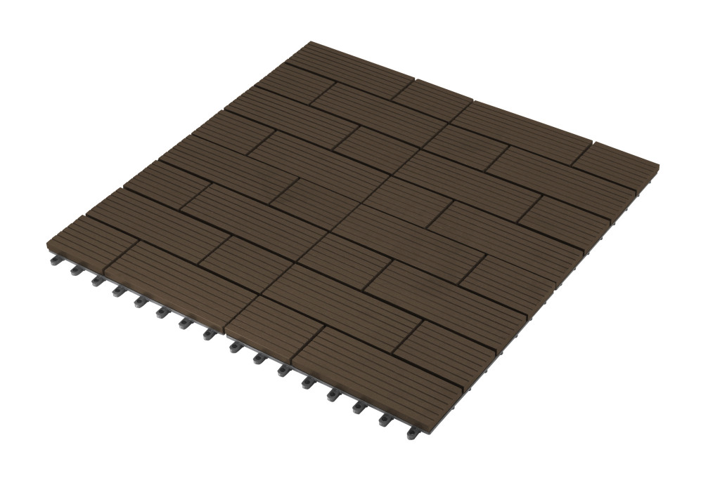 a WPC anyagból készült burkolülapok teljes egészükbenvannak színezve, így a szín nem kopik és nincsenek látható hibák, afelületén nincsenek "csomók".