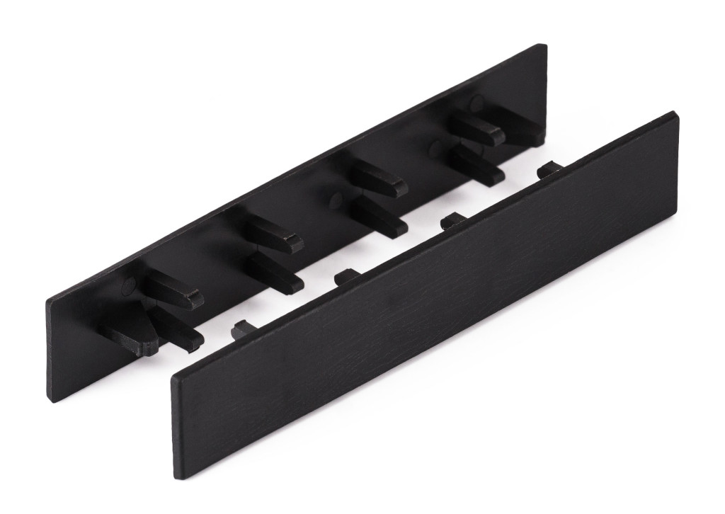 G21 takaró a WPC padlóburkolat végéhez, rögzítés ragasztóval (nem tartozék), méretek 13,7 x 2,4 x 1,7 cm, szín: Ébenfa.