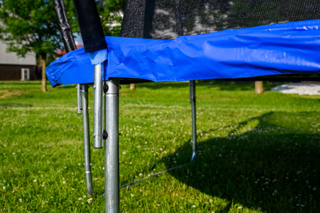 Nagy figyelmet fordítottunk a trambulin rugók megbízható burkolására is, hogy minimalizáljuk a sérülések kockázatát. A rugófedél tartós, vízálló anyagból készült, puha töltéssel. A trambulin oldalsó oszlopait vízálló, lágy habborítással vontuk be.