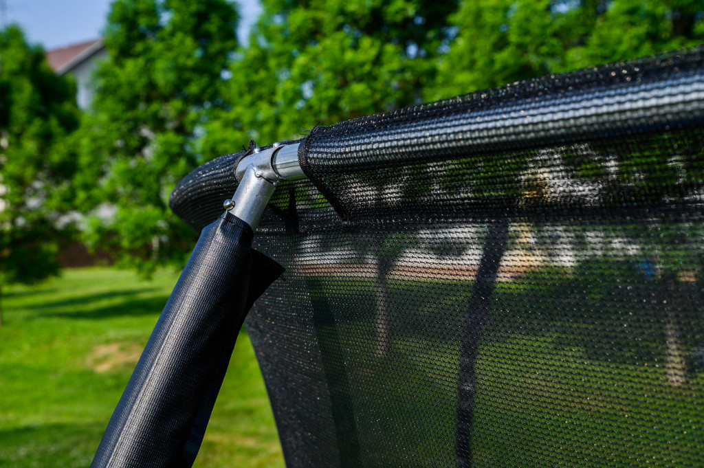A trambulin védőhálója erős és sűrű szövésű. A biztonsági háló belülről van rögzítve a trambulin keretéhez.