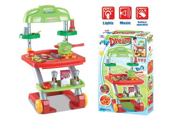 A nyári konyha mindent tartalmaz, amire szükség van az igazi grill partihoz. A csomagban található egy nyári konyha grillel és főzőlappal, fazék fedéllel, teászkészlet, evőeszköz, élelmiszer és fűszer másolatok, és sok más, amire a sikeres grillezéshez szükség van. Ráadásul a konyha
