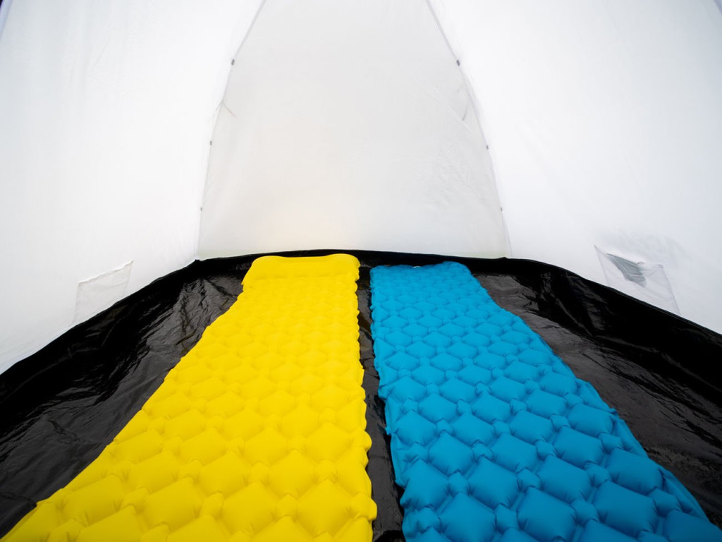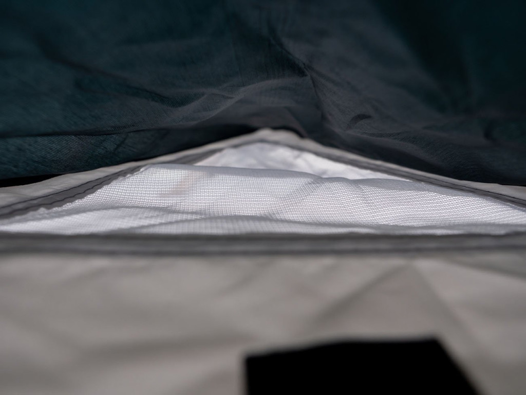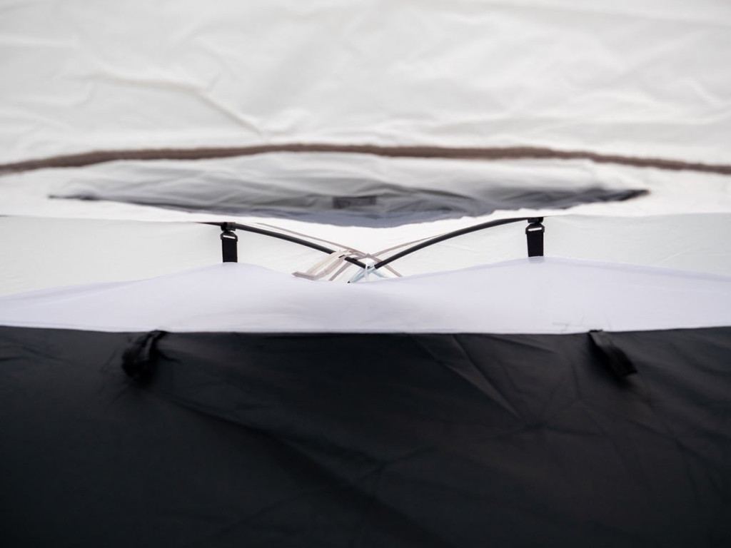 A kupola alakú, dupla rétegű kialakítás még esős időben is ideális. A PE bélés 5000 mm vízoszlopig ellenáll a víznek, a varratok zártak3000 mm-ig ellenállnak a víznek.