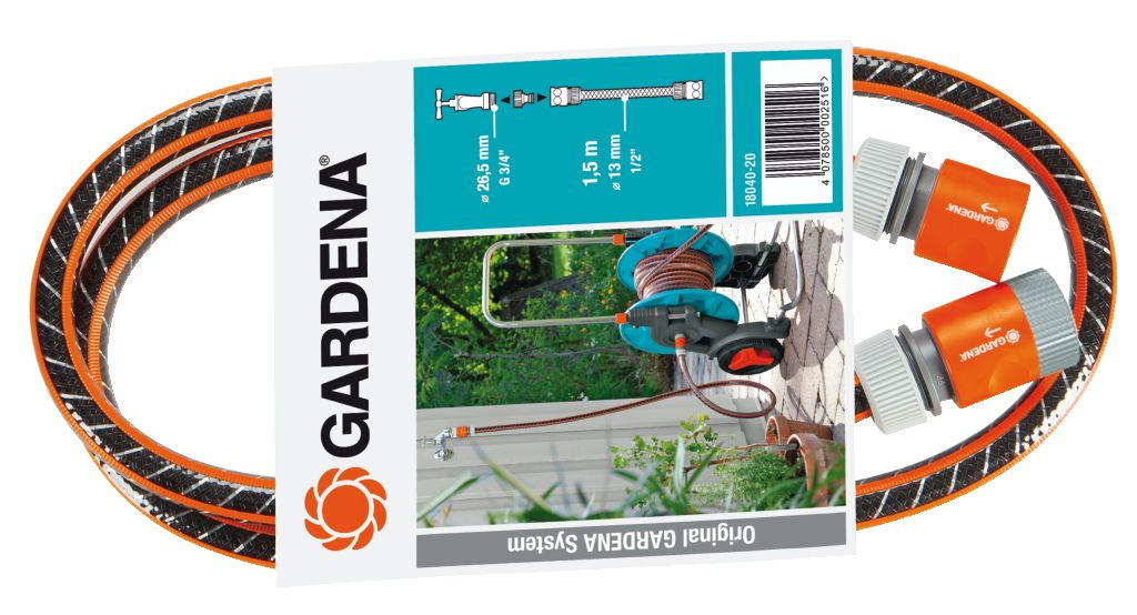 csatlakoztatásához. 1,5 m Comfort FLEX tömlő, 13 mm-es (1/2"), kompletten Original GARDENA System rendszerelemekkel: 1 x cikksz. 901, 2 x cikksz. 915.