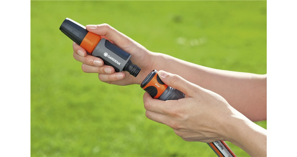 Alkalmazás: Original GARDENA System rendszerelemekkel és tisztító locsolóval a tömlő azonnali használatához