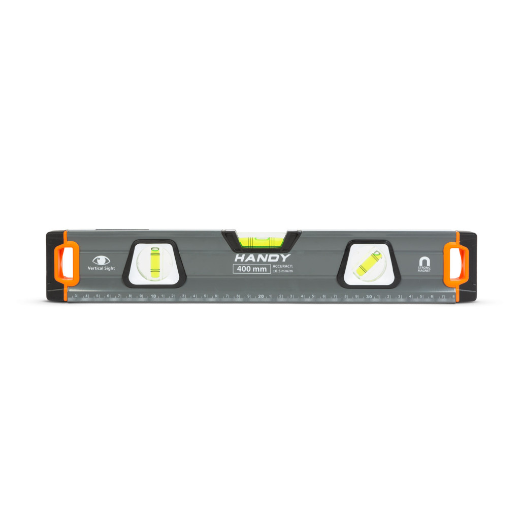 Professzionális vízmérték 3 db elektronikusan kalibrált libellával. Minőségi, nagy szilárdságú festett alumínium boxból készült, amelynek a végén stabil gumi végütköző található. Az eszköz teljes hosszában skálázott vonalzó, mérések során lehet hasznos. Az oldalélen található tükörrel ellátott betekintőablaknak köszönhetően szűk helyeken is leolvasható a függőleges libella. Ideális felhasználási terület lehet építkezéseken, felújításokon, segítségével biztosan nem lesznek többé ferde síkok, felületek.