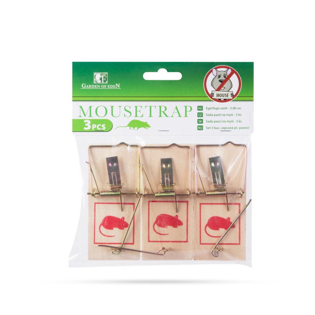 Hagyományos, fából készült egércsapda erős mechanikus fém szerkezettel. A csomagban 3 db csapda található.