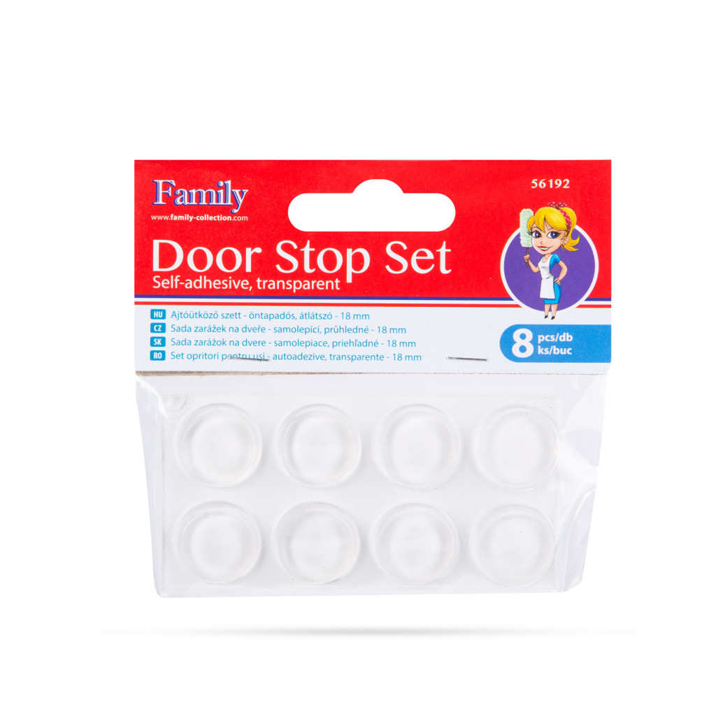 Ajtóütköző szett - öntapadós, átlátszó - 18 mm - 8 db / csomag