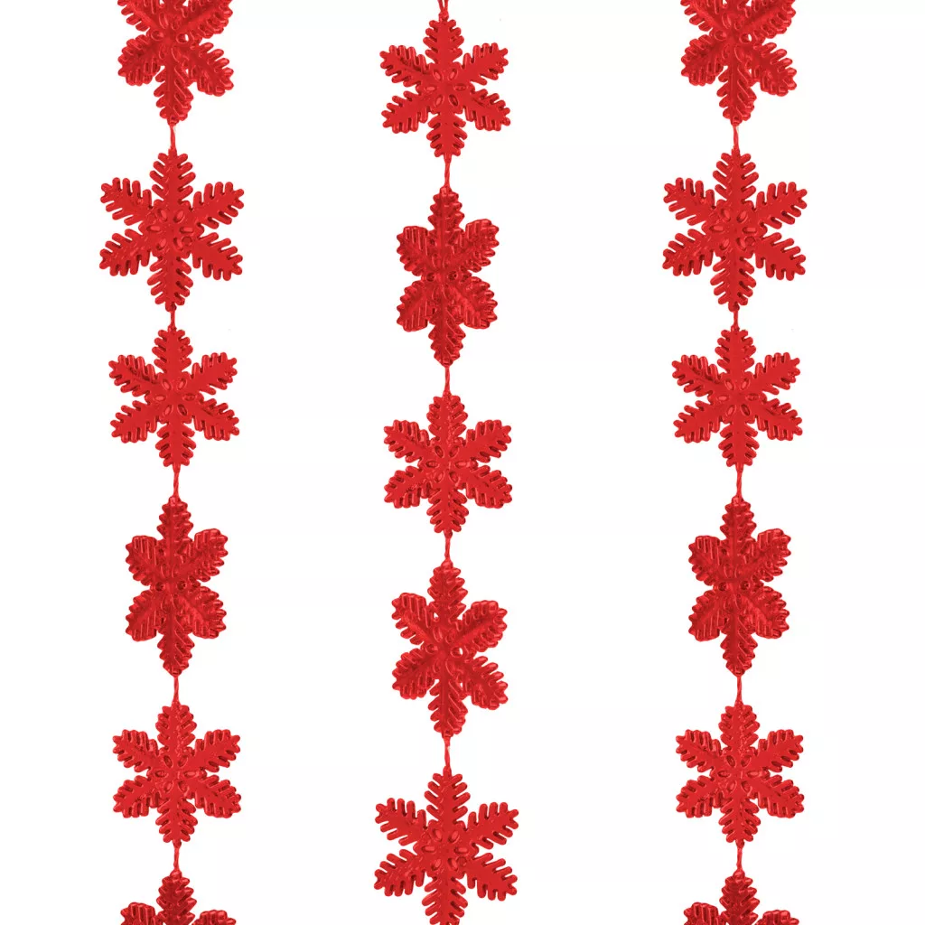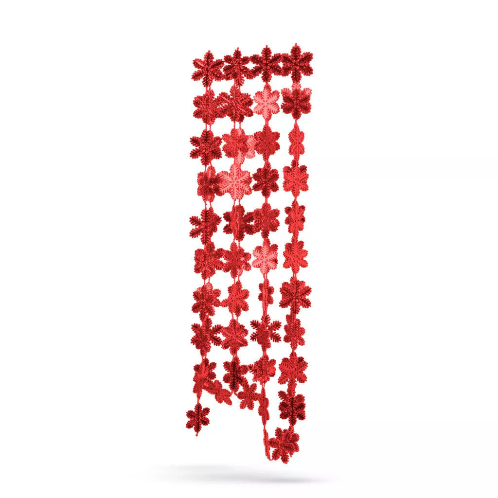 Karácsonyi girland - hópehely - 2,7 m - piros