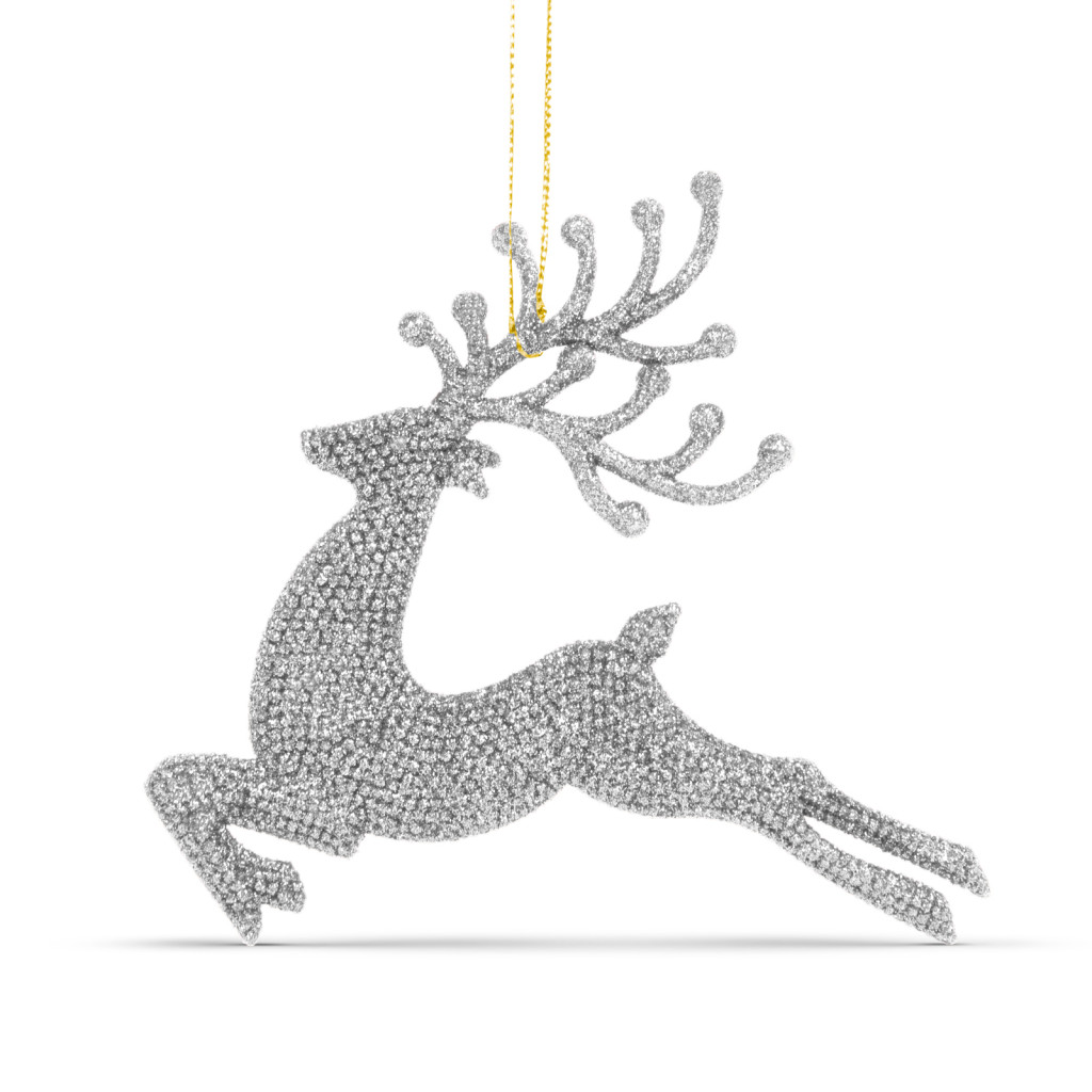 Karácsonyfadísz - glitteres rénszarvas - 12 cm - piros/arany/ezüst - 4 db / csomag
