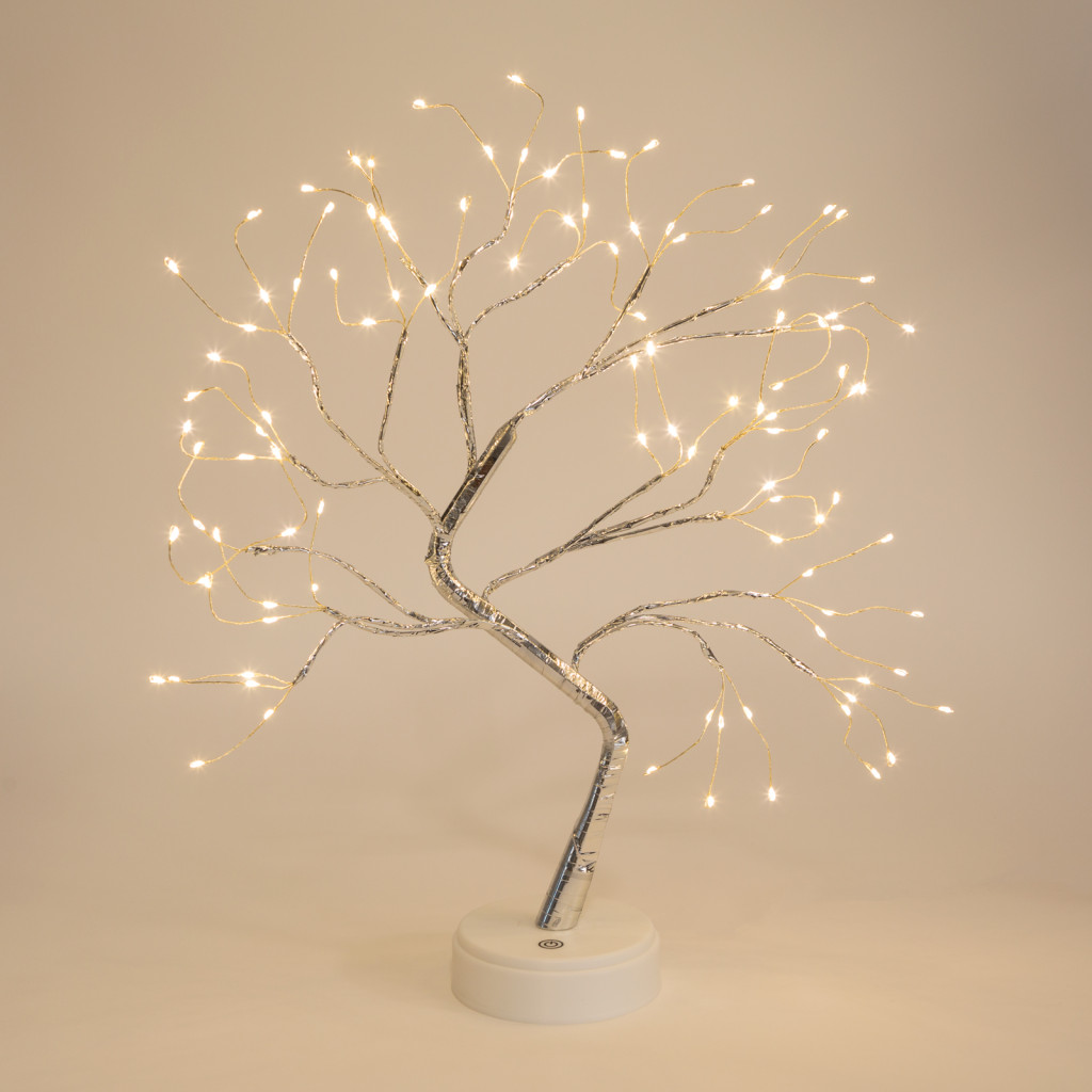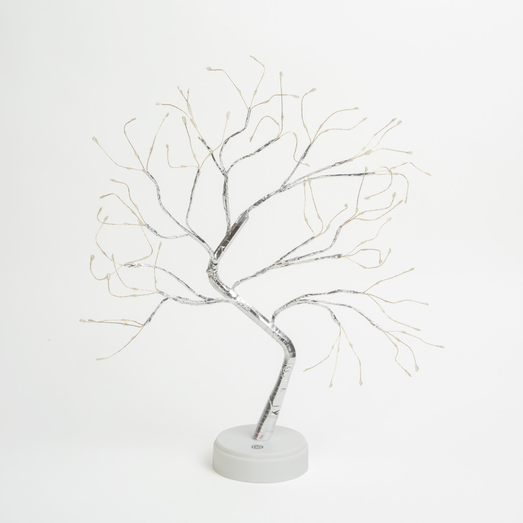 Az év bármely napján varázslatos hangulatot teremthet ennek az asztali LED dekornak a segítségével. A csillogó fatörzs szórja a fényt, melyet az ágak végén elhelyezett melegfehér LED-ek bocsátanak ki, ezzel megteremtve a helység csodálatos hangulatát. A LED technológiának köszönhetően alacsony energiafogyasztású, három AA elemnek köszönhetően nincsenek vezetékek, könnyen elhelyezhető bárhol. A talprészbe épített érintőfelület segítségével egyszerűen be- illetve kikapcsolható.
