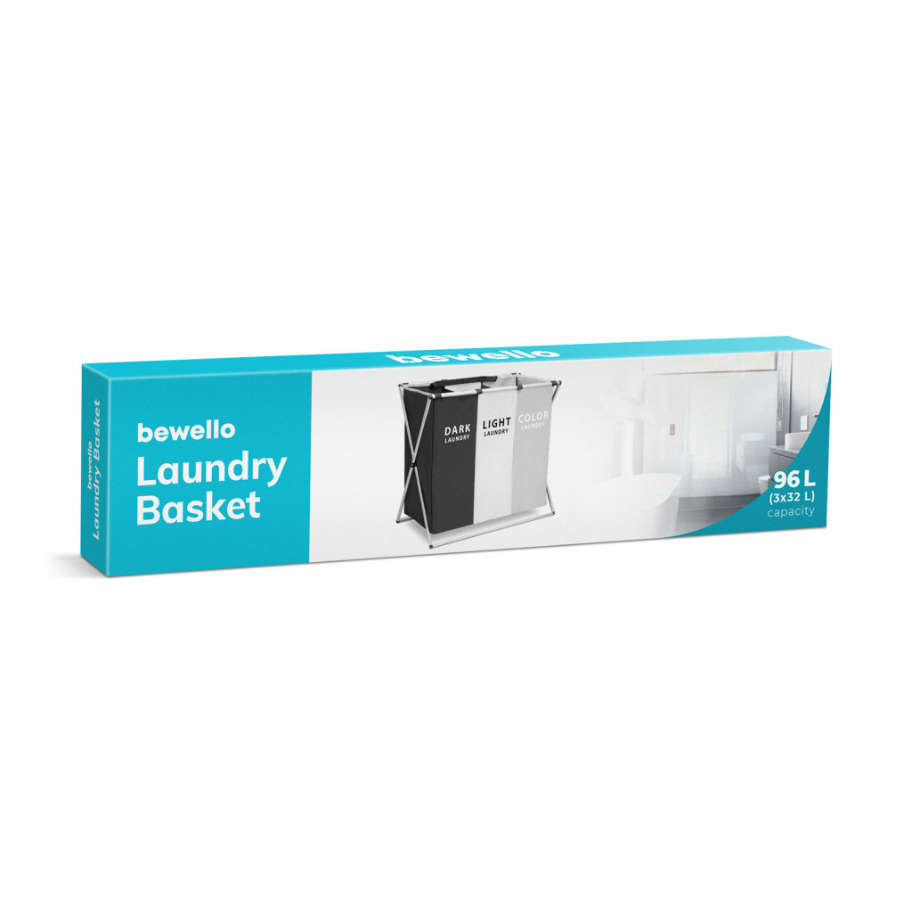 Modern megjelenésű, szövetből készült szennyestartó kosár több rekesszel. A masszív, fém váznak és a nagy befogadóképességnek köszönhetően akár több kilógram ruha, ágynemű tárolására is alkalmas. A rekeszek lehetővé teszik a különböző színű ruhák elkülönítését. Az egy mozdulattal történő összecsukás és a hordozófülek könnyű hordozhatóságot garantálnak.