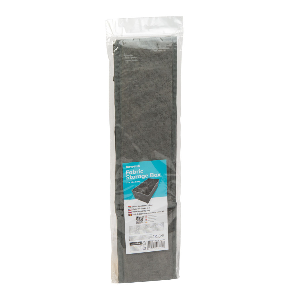 Szövet tárolódoboz - 32 x 16 x 11 cm - 12 zseb - szürke
