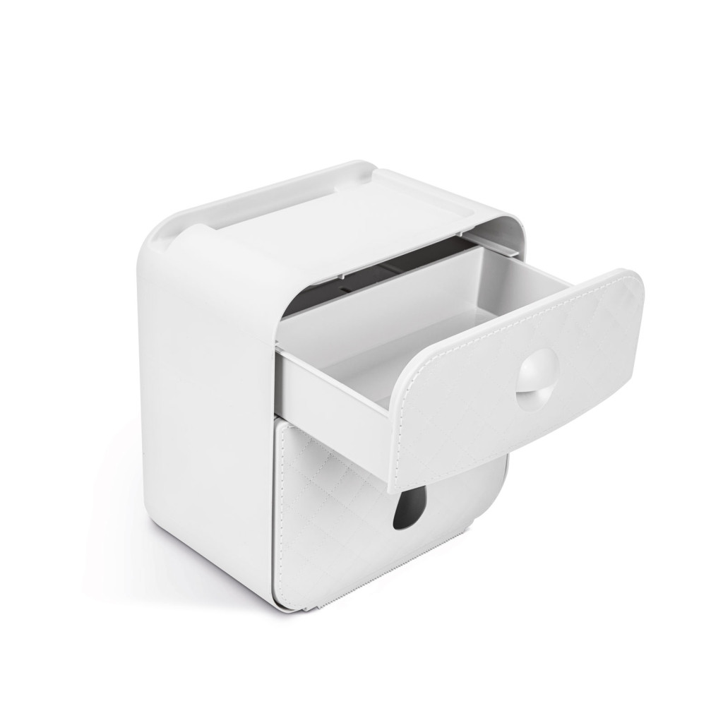 Minden illemhelyiség nélkülözhetetlen felszerelése a WC-papír tartó. Ez a praktikus, telefontartóval és beépített fiókkal ellátott szekrény elrejti a szem elől a papír gurigát. Kompakt méretének köszönhetően nem foglal sok helyet, mégis hasznos. Használhatja a tetejét polcnak, amelyre elhelyezhet például dekorációs termékeket, illatosítót, zsebkendőt. A szekrény alkalmas hajtogatott wc-papír adagolására is!