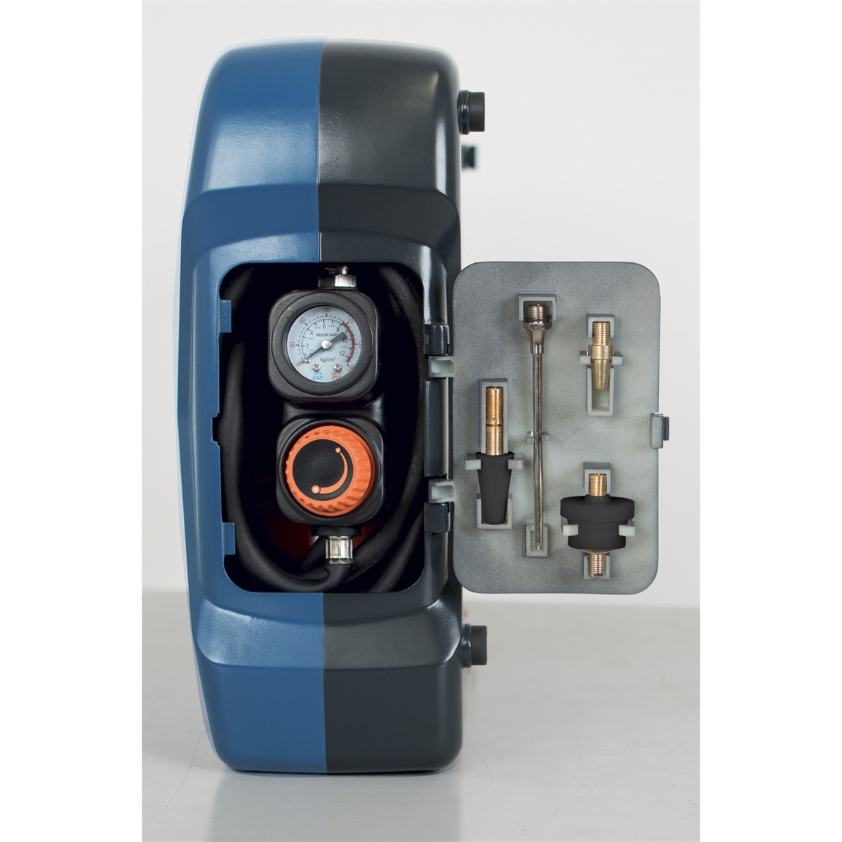 Az AIR CASE kicsi, helytakarékos, csendes, könnyű, de ennek ellenére erős és gazdagon felszerelt kitűnő kompresszor. Kiváló segítség nyújt minden háztartásban, hétvégi házban, lakókocsiban vagy kiesebb műhelyben. A standardon felüli tartozékok tartalmazzák a 2 l-s levegőtartályt, amelynek segítségével elektromos áram nélkül is felfújhatja a kerékpárját a pincében, a 9 különböző csatlakozó segítségével felfújhatja a labdákat, gumikerekeket, matracokat, vagy akár a felfújható medencét is. Tartalmazza továbbá a 3 m hosszú nagynyomású tömlőt integrált manométerrel és nyomásszabályozóval, valamint a praktikus fúvópisztolyt, a tartozékok integrált tárolási lehetőségét, a kényelmes fogantyút és a tartály nyomásmérő manométerét is. A kompresszor a legmodernebb olajmentes technológiával készült motorral van felszerelve. Az olajszint ellenőrzése, utánpótlása vagy cseréje teljesen szükségtelen, és a kompresszor így is mindig készen áll a munkára. A mérete, és összesen 8 kg súlya miatt használata ideális a kempingezéshez vagy más szabadtéri tevékenységekhez. Műszaki adatok Teljesítmény (W): 1100 Levegőtartály térfogata (l): 2 Max. nyomás (bar): 8 Szívóteljesítmény (l/min): 180 Üzemi nyomásszabályozás Igen Motor 230 V, 50 Hz Súly és méretek Súly (kg): 8.00 Méretek: Magasság (m): 560.00 Hosszúság (h): 360.00 Szélesség (sz): 155.00