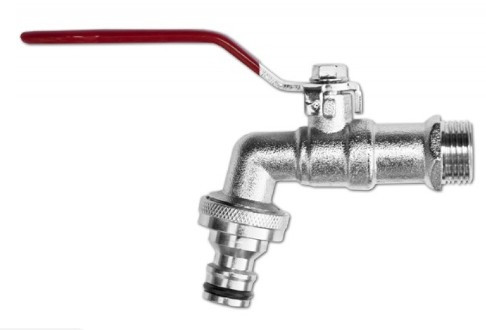 Kerti csap nikkelezett sárgaréz 1/2 col, golyós, bekötés 3/4 col, kuplungos