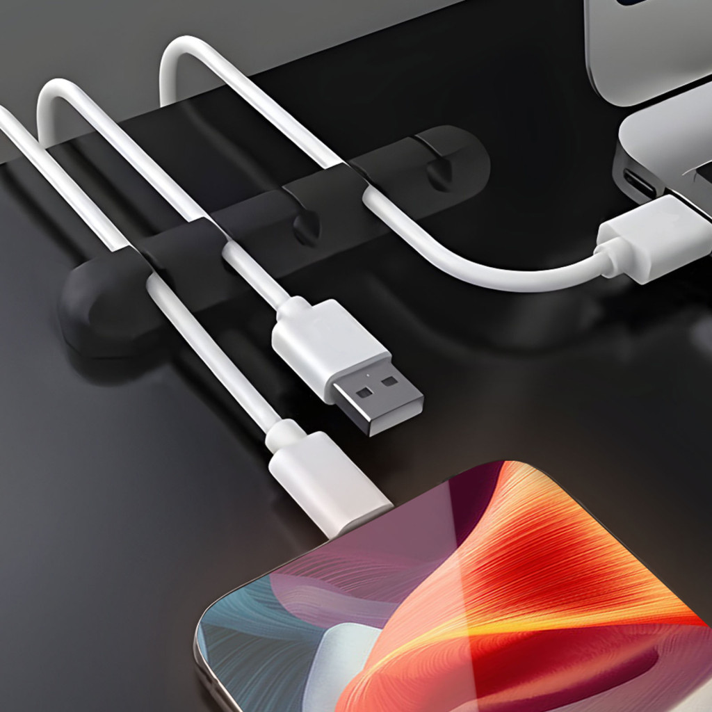 Tartsa rendezett állapotban a kábeleit az asztalra rakható, öntapadós szilikon kábelrendezővel! Ez a praktikus és esztétikus megoldás segít megelőzni a kábelkáoszt és biztosítja, hogy minden kábele kéznél legyen, amikor szüksége van rá. A szett több egységből áll, amelyek mindegyike más-más számú kábel rögzítésére alkalmas, így könnyedén megtalálhatja a megfelelő elrendezést az igényeinek megfelelően. Bármely bútorra egyszerűen telepíthetőek, a rugalmas, tartós, gumi anyagnak köszönhetően, a vájatokba a kábelek egyszerűen belepattinthatóak. A diszkrét, fekete szín bármilyen asztali környezethez illik és nem vonja el a figyelmet a munkaterületről.
