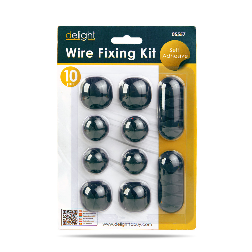 Vezeték rögzítő szett - öntapadós - fekete - 10 db / csomag