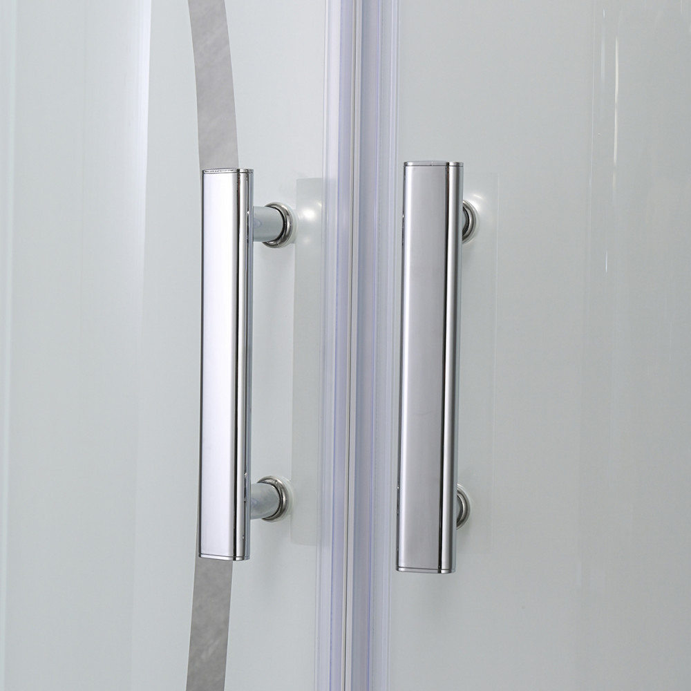 A Leziter Spirit Bamboo zuhanykabin íves formája végett illeszkedik a sarokba, így helytakarékos elrendezést kínál, miközben tágas és kényelmes zuhanyzási teret biztosít. A krómozott alumínium profilok és a 16 cm-es fém fogantyúk stabil, masszív szerkezetet adnak, amely hosszú távon is megőrzi formáját és fényét. A mintás biztonsági üveg természetes hatású, világos felületet alkot, amely megőrzi a tér nyitottságát, ugyanakkor kellemesen diszkrét megjelenést kölcsönöz a zuhanyzónak.