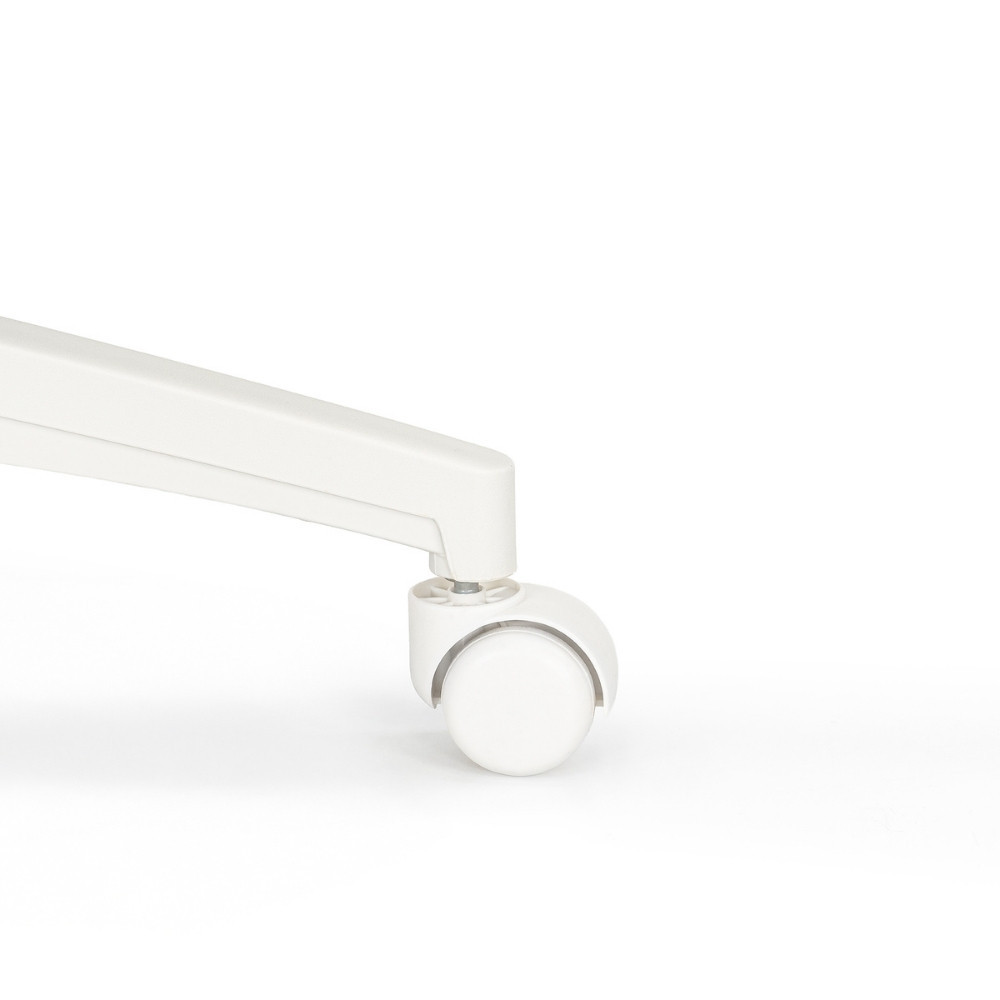 A 32 cm-es, ötágú műanyag lábcsillag és a strapabíró műanyag kerekek stabil tartást és könnyű mozgathatóságot biztosítanak, így a szék gördülékenyen követi a mozdulatokat a munkahely különböző pontjai között, anélkül, hogy fel kellene állni.