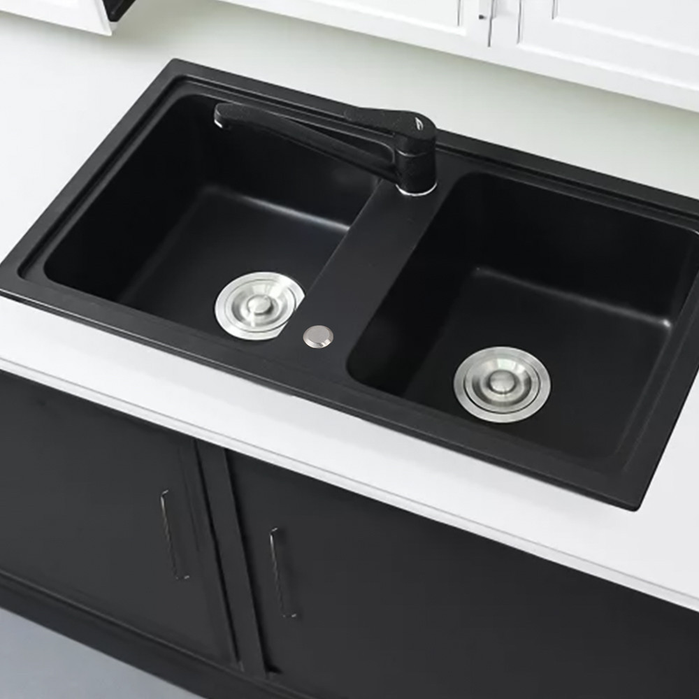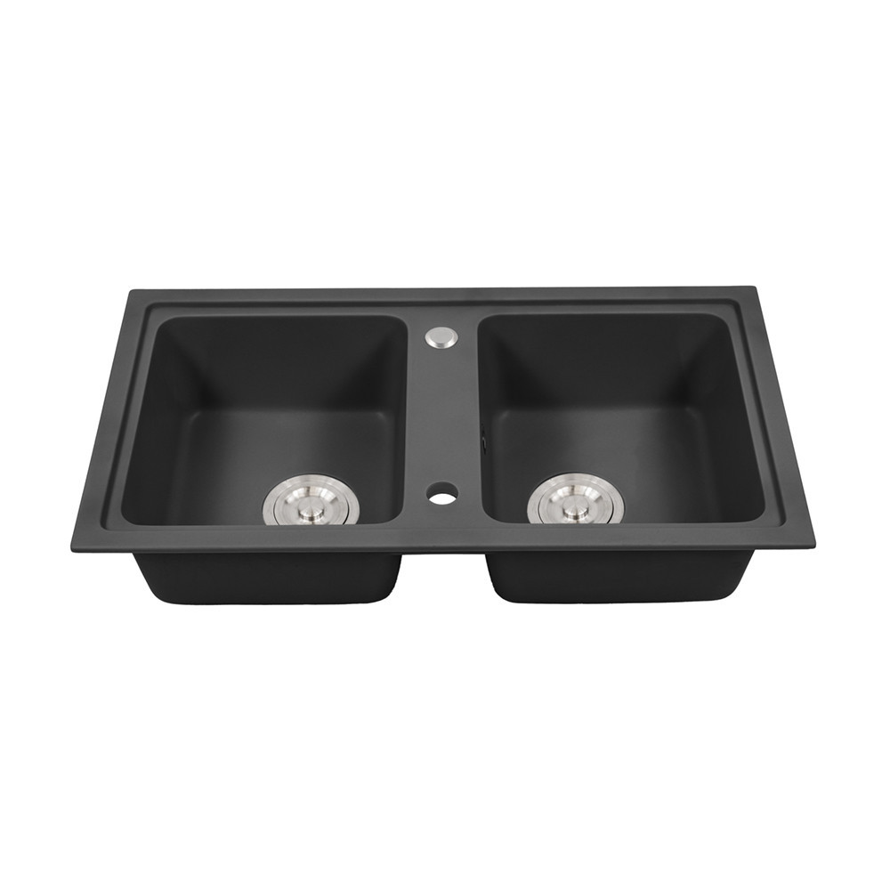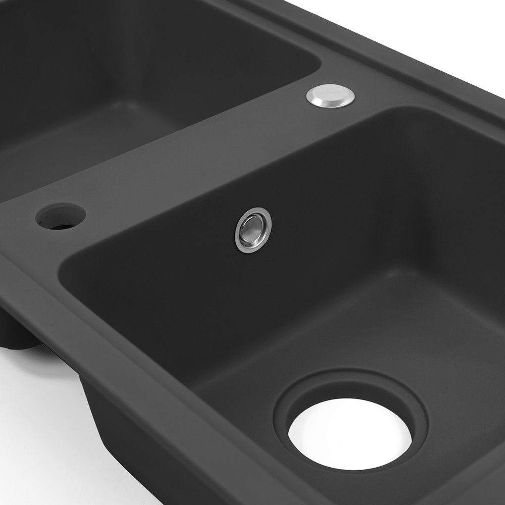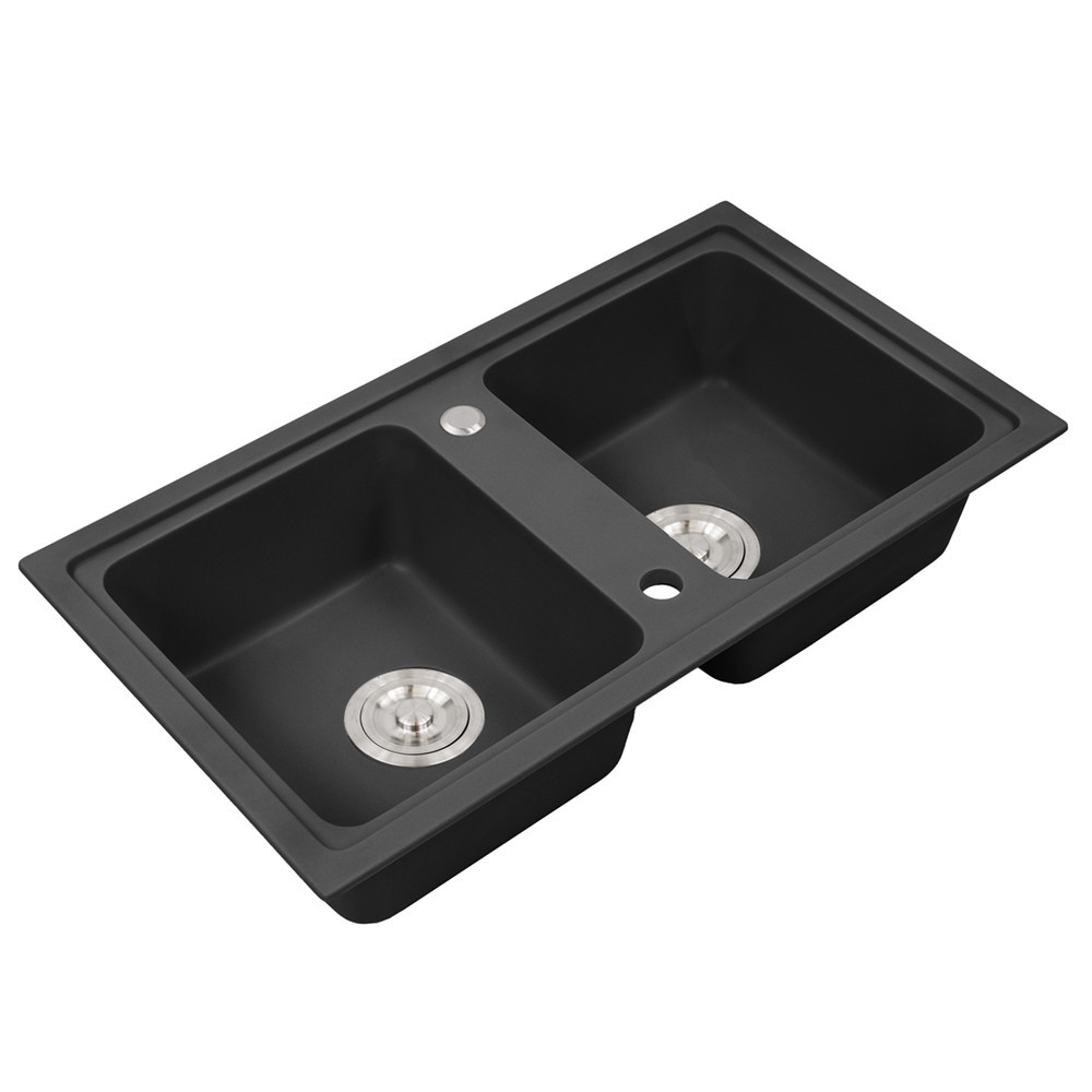 A Tia szögletes két medencés gránit mosogató fekete színben a konyhád új központi elemévé válik. Két medence biztosítja a kényelmes és hatékony munkavégzést, miközben a fekete gránit kivitelezés az elegancia és a stílus jegyében tündököl.