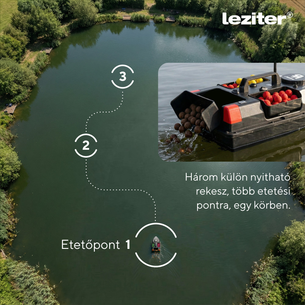 Ez az intelligens, GPS-vezérlésű etetőhajó új szintre emeli a horgászatot. Akár 100 külön GPS-pontot is eltárolhatsz, így minden alkalommal ugyanoda tudod juttatni a csalit – hibátlan pontossággal. A három külön etetőrekesz lehetővé teszi az eltérő helyekre való csalogatóanyag szórást, miközben a 2 kg-os összkapacitás bőven elegendő a nagyobb pecákhoz is.