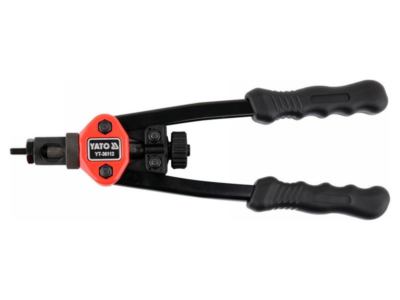 Kézi szegecselő YATO YT-36112 M3-M8. A szegecselő anyagok nitonachats segítségével történő összekötésére szolgál. Belső menettel rendelkező hüvelyekkel hajt végre anyagkapcsolatokat. Ez lehetővé teszi további elemek fém csavarokkal vagy csavarokkal történő rögzítését. Fejek méretekben: M3, M4, M5, M6, M8. Tartós CRMO króm-mérő-mérő szerszámacélból készült. A fogantyúk csúszásgátló gumi borítással vannak ellátva. Használati figyelmeztetések: Figyelem! Mindig használjon személyes védőfelszerelést a munka során.